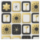 What's black and white and gold all over? It's this Retro Glamourous Gold Fabric. The mid century modern design features a grid of sophisticated images. There are mix and match patterns of mod flowers, starbursts, martini glasses, and impressionist stars on black, white, and gold backgrounds. This design is ideal, making every day a celebration. Order today because all that glitters really should be gold!