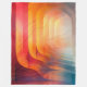 This abstract artwork draws inspiration from mid-century modern design, blending soft geometry with a warm, luminous colour palette. Layered arch-like forms flow inward, creating a sense of depth and gentle movement, as if the viewer is stepping through a glowing architectural passage. Rich reds, burnt orange, golden yellow, and muted teal fade seamlessly into one another, producing a nostalgic yet contemporary atmosphere.