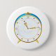 Retro Gold Alarm Clock with Blue Trim Timepiece 7.5 Cm Round Badge