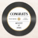 Retro Gold Glitter Vinyl Record Congrats Wedding Round Paper Coaster