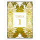 Retro Gold Green Damask Wedding Table Number