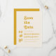 This modern retro wedding Save the Date card features goldenrod yellow text on an off-white background. Add the names and monogram initials of the bride and groom in stylish retro display typography and the details in sans serif font. The reverse side is a matching shade of solid goldenrod.