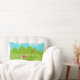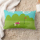 This Retro Golfer Lumbar Pillow is more fun than a day on the greens. The 1960's style, minimalist art design is anything but par for the course. It features a lone golfer on a lush, green fairway. The mid century modern golfer is making a real fashion statement in his stylish, plaid, golf pants and fuchsia shirt. The blonde, fit, weekend warrior is on his hands and knees attempting to line up a shot. Or maybe he's attempting to give the ball a nudge in the direction of the hole. Does it really matter? At his side, we see a single, golf club. In front of him, is the elusive hole, with a red flag, which is taunting him. The background features a green line of cartoon trees, an aqua sky and two, white, kidney bean shaped clouds. The opposite side of this fun throw pillow is green and can be personalised. This design is sure to be a hole in one with your favourite golf pro.
