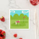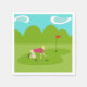 These Retro Golfer Paper Napkins are more fun than a day on the greens. The 1960's style, minimalist art design is anything but par for the course. It features a lone golfer on a lush, green fairway. The mid century modern golfer is making a real fashion statement in his stylish, plaid, golf pants and fuchsia shirt. The blonde, fit, weekend warrior is on his hands and knees attempting to line up a shot. Or maybe he's attempting to give the ball a nudge in the direction of the hole. Does it really matter? At his side, we see a single, golf club. In front of him, is the elusive hole, with a red flag, which is taunting him. The background features a green line of cartoon trees, an aqua sky and two, white, kidney bean shaped clouds. This design is sure to be a hole in one with your favourite golf pro.