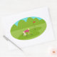 These Retro Golfer Stickers are more fun than a day on the greens. The 1960's style, minimalist art design is anything but par for the course. It features a lone golfer on a lush, green fairway. The mid century modern golfer is making a real fashion statement in his stylish, plaid, golf pants and fuchsia shirt. The blonde, fit, weekend warrior is on his hands and knees attempting to line up a shot. Or maybe he's attempting to give the ball a nudge in the direction of the hole. Does it really matter? At his side, we see a single, golf club. In front of him, is the elusive hole, with a red flag, which is taunting him. The background features a green line of cartoon trees, an aqua sky and two, white, kidney bean shaped clouds. This design is sure to be a hole in one with your favourite golf pro.