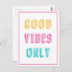 Retro Good Vibes Only Colourful Typography Postcard