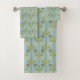Retro Green and Blue Cute Folksy Floral Pattern Bath Towel Set