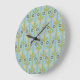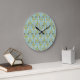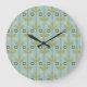 Retro Green and Blue Cute Folksy Floral Pattern Large Clock