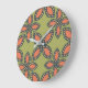 Retro Green and Orange Abstract Floral Pattern Large Clock