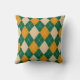 Retro Green Beige Mustard Argyle Diamond Pattern Cushion