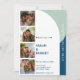 Green, blue and white retro arch wedding invitation with photo booth styled picture collage. Personalise with your personal wedding details and newlywed couple photographs.