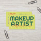 Bold, feminine, and unmistakably retro — this horizontal green, citrus lime yellow and orange business card design is perfect for modern makeup artists and hair stylists who want their brand to pop. The minimalist red bow detail and oversized “MAKEUP ARTIST” text give it a playful yet professional vibe. The back includes a scannable QR code for appointments and social links. Easy to update with your own info and logo — ideal for beauty professionals looking for a standout design.