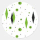These customisable Retro Green Diamonds and Starbursts Round Stickers are a new take on a vintage style. It features kitschy, black starbursts on green polka dots, surrounding geometric, green and black diamond shapes. Customise the background colour on this mid century modern product if you're feeling daring, or leave it white if subdued is more your style. You're sure to enjoy our homage to the 1950s. Buy this today and be the coolest cat on your block.