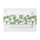 An invitation belly band with a retro holiday pattern of green holly with red berries.