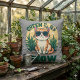Retro "Green Is The New Meow" Cool Cat Nature Art Cushion