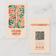 Retro Green Orange QR Code Groovy Floral Boho Business Card