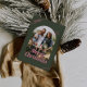 This retro and vintage Christmas double sided flat card features pink typography with a green background and an arch photo frame. Insert your favorite photos and customize it to your liking. Photos by prostooleh / Freepik.