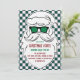 Retro Green and Pink Checkered Santa Claus Christmas Invitation.