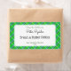 A retro canning or food label with editable handwritten-style script and slab letters on a green gingham plaid pattern with small white and blue stripes for pickles, jams or other recipes from your or your small business.