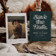 Retro and elegant save the date card featuring boho font that says "save the date" in green colour. You can add a photo on the back.