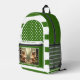 Green and white backpack featuring a retro striped design with polka dots and your custom photo (optional; you can also leave the fairy girls reading a book, if you like). Beautiful for travel or school.