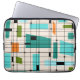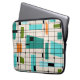 This Retro Grid and Starbursts Laptop Sleeve is where vintage style meets modern day. It features a cream coloured background with kitschy, off kilter squares and rectangles in teal, turquoise, This light blue, orange, and avocado green. The whimsical blocks of colour are overlayed are worked into some of the grid intersections. There are also black rectangles with black vertical and horizontal lines forming a grid pattern. Black starburst designs and squares placed sporadically throughout this mid century modern tapestry of colour. Grab your go-go boots and bell-bottoms and enjoy this throwback to the 1960s.