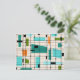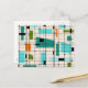 This Retro Grid and Starbursts Postcard is where vintage style meets modern day. It features a cream coloured background with kitschy, off kilter squares and rectangles in teal, turquoise, This light blue, orange, and avocado green. The whimsical blocks of colour are overlayed with black vertical and horizontal lines forming a grid pattern. Black starburst designs are worked into some of the grid intersections. There are also black rectangles and squares placed sporadically throughout this mid century modern tapestry of colour. Grab your go-go boots and bell-bottoms and enjoy this throwback to the 1960s.