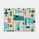 This Retro Grid and Starbursts Door Mat is where vintage style meets modern day. It features a cream coloured background with kitschy, off kilter squares and rectangles in teal, turquoise, This light blue, orange, and avocado green. The whimsical blocks of colour are overlayed are worked into some of the grid intersections. There are also black rectangles with black vertical and horizontal lines forming a grid pattern. Black starburst designs and squares placed sporadically throughout this mid century modern tapestry of colour. Grab your go-go boots and bell-bottoms and enjoy this throwback to the 1960s.