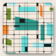 These Retro Grid and Starbursts Hard Plastic Coasters are where vintage style meets modern day. It features a cream coloured background with kitschy, off kilter squares and rectangles in teal, turquoise, This light blue, orange, and avocado green. The whimsical blocks of colour are overlayed are worked into some of the grid intersections. There are also black rectangles with black vertical and horizontal lines forming a grid pattern. Black starburst designs and squares placed sporadically throughout this mid century modern tapestry of colour. Grab your go-go boots and bell-bottoms and enjoy this throwback to the 1960s.