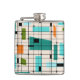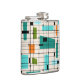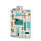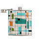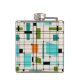 This Retro Grid and Starbursts Vinyl Wrapped Flask is where vintage style meets modern day. It features a cream coloured background with kitschy, off kilter squares and rectangles in teal, turquoise, This light blue, orange, and avocado green. The whimsical blocks of colour are overlayed are worked into some of the grid intersections. There are also black rectangles with black vertical and horizontal lines forming a grid pattern. Black starburst designs and squares placed sporadically throughout this mid century modern tapestry of colour. Grab your go-go boots and bell-bottoms and enjoy this throwback to the 1960s.