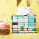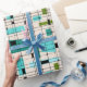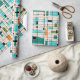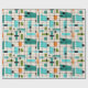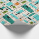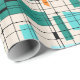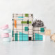 This Retro Grid and Starbursts Wrapping Paper is where vintage style meets modern day. It features a cream coloured background with kitschy, off kilter squares and rectangles in teal, turquoise, This light blue, orange, and avocado green. The whimsical blocks of colour are overlayed are worked into some of the grid intersections. There are also black rectangles with black vertical and horizontal lines forming a grid pattern. Black starburst designs and squares placed sporadically throughout this mid century modern tapestry of colour. Grab your go-go boots and bell-bottoms and enjoy this throwback to the 1960s.
