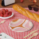 Retro Groove Pink and Orange Abstract Pattern Paper Plate