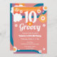 Retro Groovy 10th Birthday Invitation