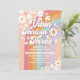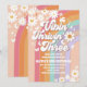 Celebrate your little ones big day with this retro-inspired 3rd birthday invitation! Featuring a vibrant rainbow backdrop, playful daisies, peace signs, butterflies, and whimsical fonts, this design captures the fun-loving spirit of the 1970s. Perfect for a groovy birthday party, this customisable invite sets the tone for peace, love, and celebration. Personalise with your childs name, party details, and RSVP information to create a one-of-a-kind keepsake that guests will adore.