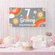 Cute girly retro 7 is groovy birthday invitations. Popular retro rainbow, stars, flowers, and 60s style font. Available as a digital download printable.