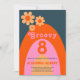 Celebrate her reaching groovy 8 with this cool retro 1970s 8th birthday invitation in vintage funky 70s colours including navy blue, orange, mustard yellow and pink in a rainbow arch with simple floral daisy pattern. Easy to use templates this custom invite sets the seen for a cool groovy hippie girls party. Original artwork by artist Catherine Sweetman
