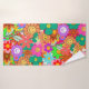 Retro Groovy Boho Hippie Flowers Bath Towel