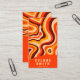 A Vintage retro Psychedelic colourful liquid business card. That features a handmade groovy pattern boho abstract wavy shapes lines .In elegant chic orange and brown and beige . Modern yet it has nostalgic seventies vibes and colours and groovy fonts. With customisable name and profession and QR code.