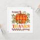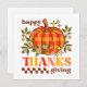 Retro groovy style colourful greeting card. Elegant retro font typography "Happy Thanksgiving", with cute daisy flowers, stars and a chequered pumpkin. The card includes a wonderful greeting message at the back which can be personalised.