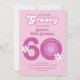 Retro groovy daisies flower and bold sixty pink backdrop birthday invitation.