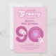 Retro groovy daisies flower and bold ninety pink backdrop birthday invitation.
