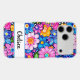 Make a retro statement with this groovy 70s inspired hippie flower power floral iphone 17 pro max phone case! It's modern and trendy with bright multi-colored painted flowers. Make it uniquely yours with your name in a modern script font in black. It will look fabulous on your phone!