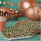 Celebrate your birthday with these groovy brown paper plates with retro pink, aqua and green flowers.
