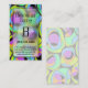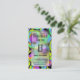 Chartreuse,Orange, Teal, Blue, Magenta, black and white retro style psychedelic colour shapes with glassmorphic panels for information. Use an Initial for the centre or upload your logo.