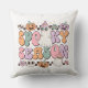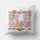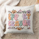 Retro Groovy Halloween Spooky Season Throw Pillow with pumpkins, skulls, ghosts.