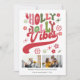 Retro Groovy Holly Jolly Vibes Typography 2 Photo Holiday Card