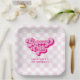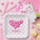 Create your own retro style hot pink and pink "Groovy One" typography square paper plates for your baby girl's first birthday party.