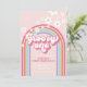 Retro Groovy One Rainbow Pink Invitation