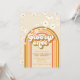 Groovy One! Retro inspired 1st birthday invitation with 70's style fonts and colours, rainbow, and daisies in fall colours. brown, tan and orange colours.