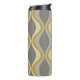 A mod patterned gold bottle with a place for a simple monogram. The taupe, grey and gold design has a groovy organic wave pattern. A minimal look in subtle colours with a simple serif font for a monogram.